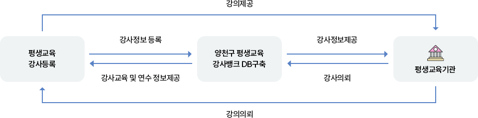 | 등록방법 | 양천구평생학습관 홈페이지에서 강사뱅크 등록 |